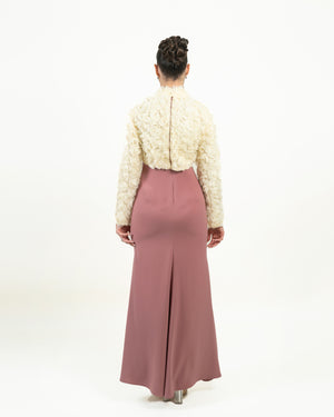 Turn heads in this sophisticated evening gown, designed with a flattering sweetheart neckline and a sleek, floor-length silhouette. The smooth, flowing fabric drapes gracefully for a timeless look, perfect for formal events or special occasions. Paired with a luxurious ivory textured shrug featuring delicate floral details and a high neckline, this ensemble beautifully balances modern elegance with classic charm. Ideal for weddings, and party.