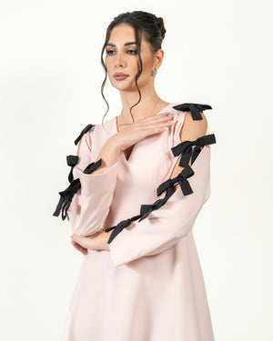 Asymmetrical-Hem Dress with Bow-Sleeve Detailing